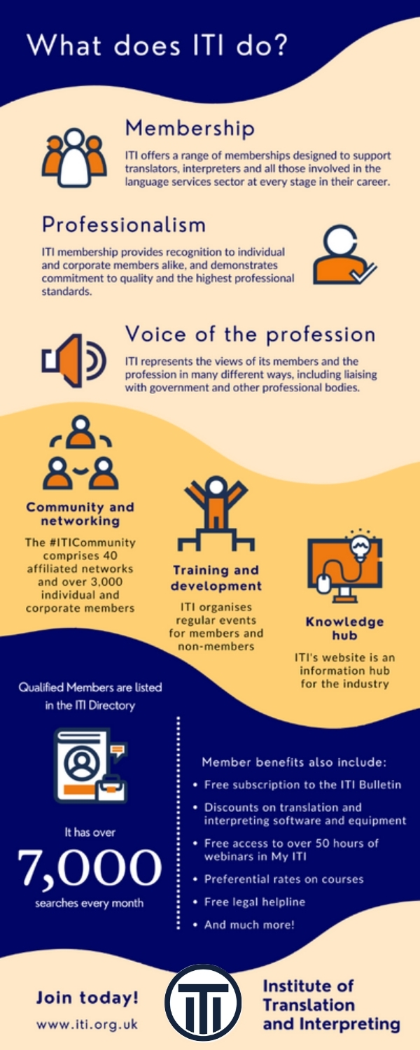 ITI and its members are committed to promoting greater understanding of the translation and interpreting profession through a variety of outreach activities.